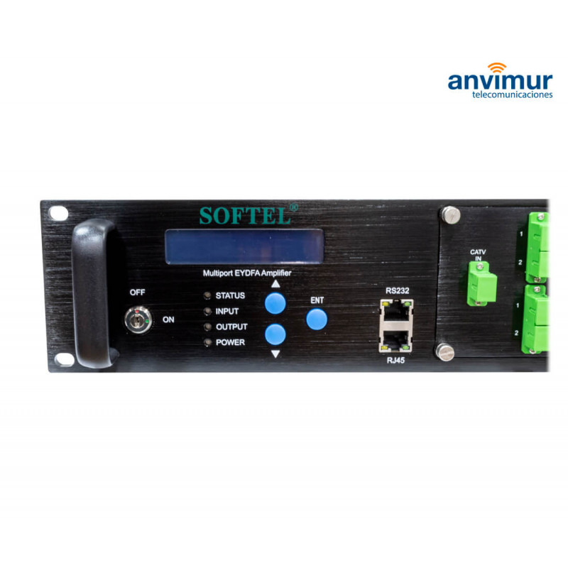 Amplificador EYDFA (Erbium-Ytterbium Doped Fiber Amplifier) para amplificar la lambda de 1550nm con multiplexador WDM incorporado.